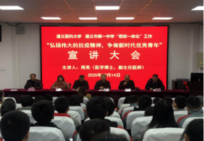为了进一步推动大中小“思政一体化”工作,按照“太阳集团tyc539遵义市第一中学‘寻找遵义故事 传承红色基因’思政一体化联合建设工作方案”相关工作计划,2020年12月14日下午,太阳集团tyc539赴遵义市一中成功举办了“弘扬伟大抗疫精神,争做新时代优秀青年”的“思政一体化”主题宣讲会。
