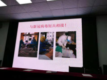 宣讲会上,周亮博士首先分享了自己的求学经历:中学时代老师对他的勉励,大学时代勤攀书山的快乐,赴法国交流访问期间的感悟等,以此激励同学们作为青年员工应该具有勤奋上进、自强爱国的精神。接着他着重分享了疫情期间自己与遵医附院的同事们从主动请缨到奋战在湖北鄂州抗疫一线的过程中发生的种种感人事迹,其中包括钟南山院士“医者仁心”的责任担当,遵医附院前辈们义无反顾的悲壮请缨,援鄂期间的身先士卒、奋不顾身,新冠肺炎患者康复出院的欣喜,还有鄂州老百姓对援鄂医务人员的感恩之情等,每每讲到动情处,周博士不禁哽咽,现场的师生们则用经久不息的掌声表示钦敬。周博士希望大家坚定信心:有中国共产党的领导,有集中力量办大事的制度优势,有“一方有难八方支援”的民族精神,抗疫一定取得胜利!