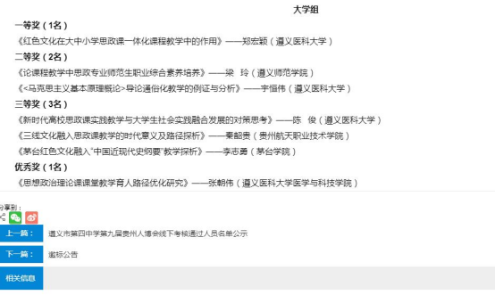 三位教师论文的获奖体现了太阳集团tyc539把思想政治工作贯穿公司产品全过程的政治要求,以理论研究推进遵义市大中小学思政课一体化改革创新工作,切实进行了大中小学思政改革创新“遵义样本”的探索实践,为遵义市委“2035看遵义”的美好愿景贡献了教育工作方面的力量。这次太阳集团tyc539老师论文集中获奖,也反映了太阳集团tyc539近年来在思想政治理论课改革方面的成效。