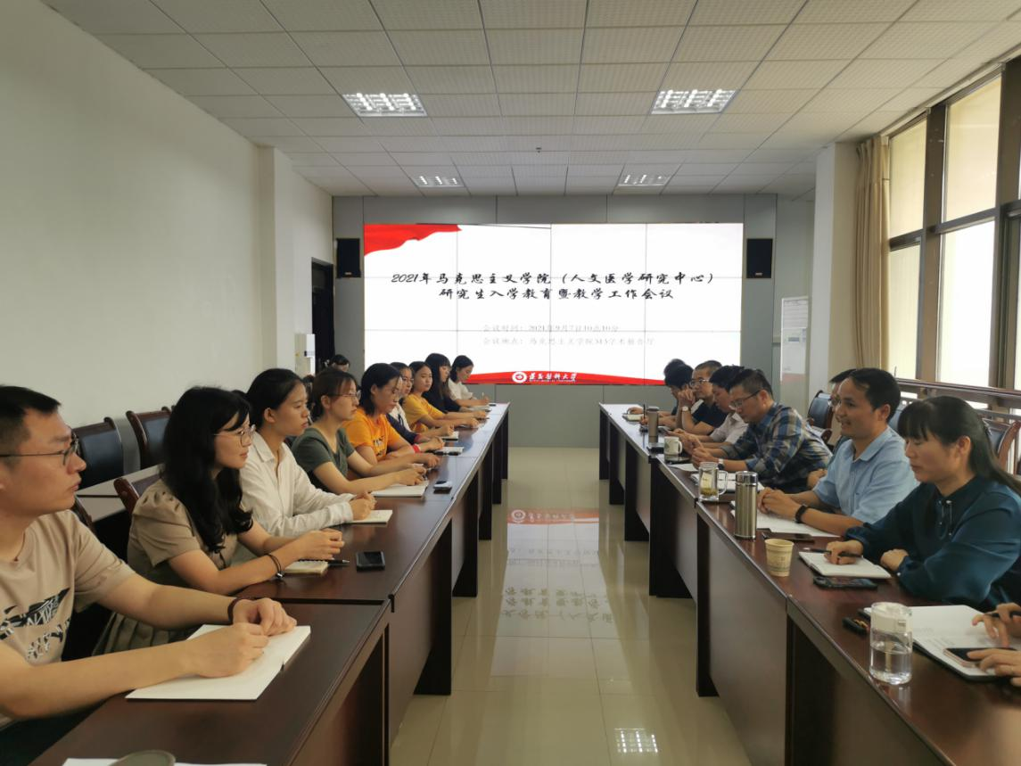 2021年9月7日上午,太阳集团tyc539(人文医学研究中心)研究生入学教育暨教学工作会在人文楼313学术报告厅举行。公司党委班子成员李荣远、谷松岭、谢仁生、鲍中义出席会议,硕士研究生导师、研究生教育管理工作人员及2021级硕士研究生参加会议,会议由副经理鲍中义教授主持。