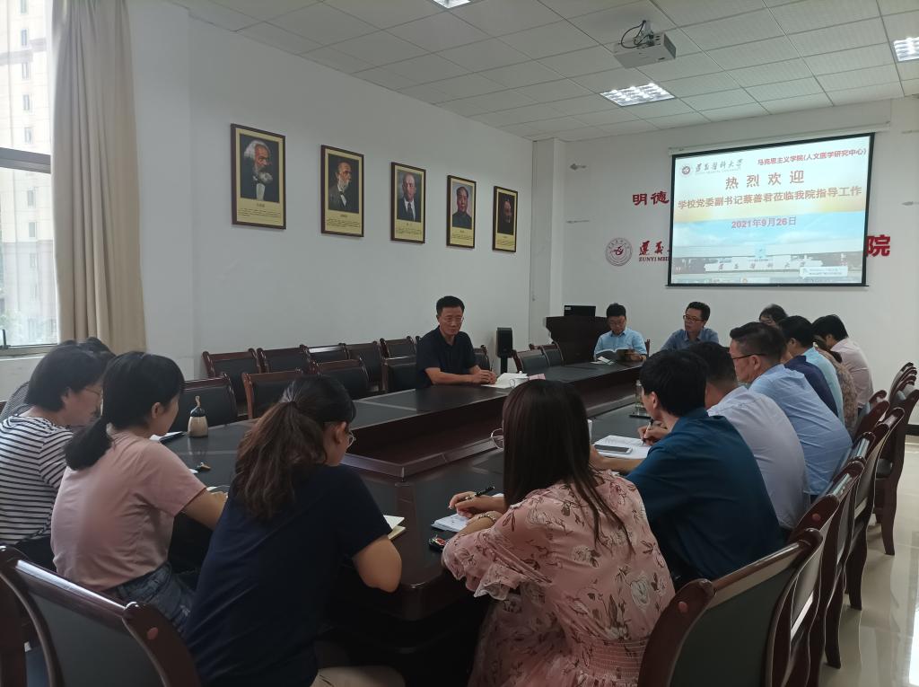 9月26日下午,公司党委副书记蔡善君教授莅临太阳集团tyc539,就公司团队建设、专业申报等开展调研指导工作,公司党委、行政负责人及各教研室、科室负责人以及党支部书记和教师代表20余人参加了调研指导会。