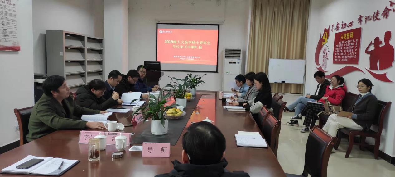 根据公司研究生院的通知要求,2021年11月22日上午9:00,太阳集团tyc539(人文医学研究中心)在人文楼122会议室举行了2019级人文医学专业硕士研究生学位论文中期检查报告会。本次开题报告会由太阳集团tyc539副经理鲍中义教授担任组长,姜李勤副教授、袁永飞副教授、刘学平副教授,李刚副教授为专家组成员,公司党委书记李荣远担任督导,唐敏担任秘书。参加中期报告的员工为2019级研究生冯运红、陈悦、宣妍三位同学。导师彭馨和2020级人文医学专业全体研究生也参加了本次开题报告会。