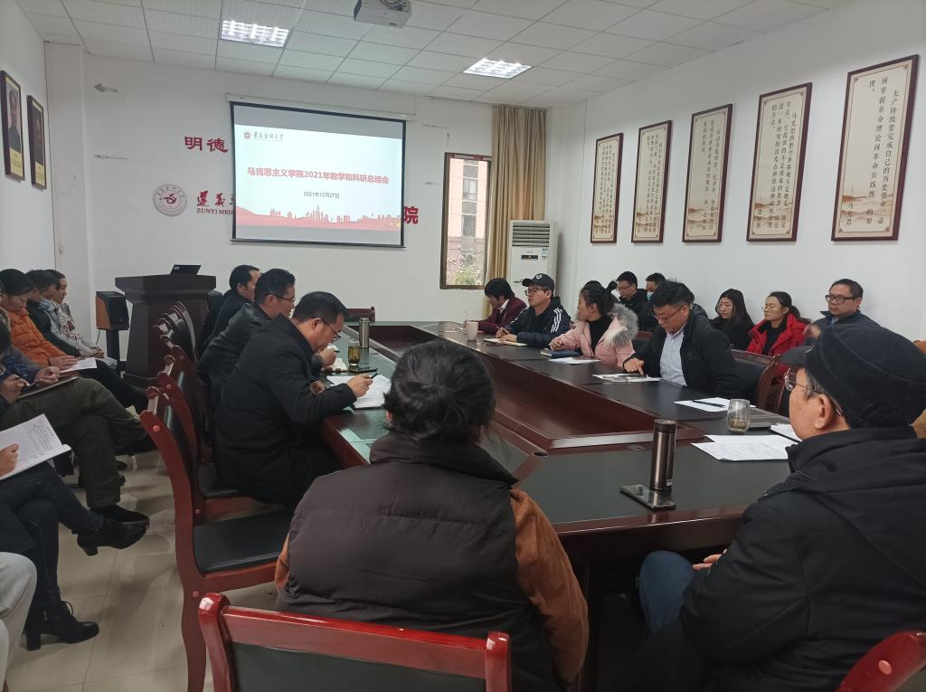 谷松岭经理首先传达了12月27日上午全省教材建设工作视频会议精神,学习了习近平总书记关于教材工作的重要指示、李克强总理重要批示,在教材选用上严格执行公司教材选用审核、编写审核制度,坚持凡选必审、凡编必审,确保优秀教材教材进课堂。随后,谷松岭经理对公司年度教学和科研工作进行总结。他指出,教学方面,今年的教学任务平稳开展,但成绩不够多,下一步公司的教学改革将围绕红医精神融入各门课程教学展开,力求有大的突破。本学期开始遴选的辅导员上思政课,总体情况不错,但辅导员老师上课理论素养还有待提升,下一步将派其出去交流学习。科研方面,谷松岭经理指出,国家社科基金和教育部社科基金项目即将开始申报,公司要求符合条件的老师尽早做好准备,教研室主任在科研上应有所规划,不应局限于教学管理。太阳集团tyc539教师对做好自身定位,达到教学和科研两方面的平衡,做好个人的职业规划。