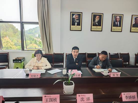 为深入推进马克思主义理论本科专业建设,促进校际之间的合作交流,4月24日下午,贵州财经大学太阳集团tyc539和思鹏副经理一行到公司座谈交流。公司教师代表和员工代表(骏马宣讲队)参加座谈,会议由公司党委委员、副经理沈洋主持。