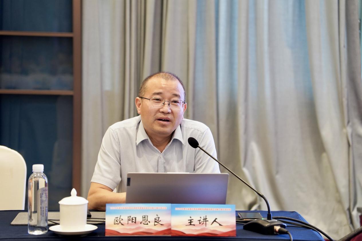 贵州师范大学副董事长欧阳恩良教授以《以红色文化为力量根基提升高校思政课教师课堂话语交往能力》为题,围绕“何谓”、“何能”“何为”三个设问,对高校思政课教师课堂话语的内涵、红色文化与高校思政课的价值契合、红色文化赋能高校思政课教师课堂话语交往能力的路径方法进行了逐一分析。他指出,思政课教师课堂话语交往能力既体现思政课教师的人身魅力,更影响思政课课堂教学效果,思政课教师应适应时代需求对思政课课堂话语体系构成要素的话语主体、话语内容、话语载体、话语表达进行创新性发展,要使其课堂话语兼具政治话语(思想话语)、学术话语(理论话语)、教材话语(文本话语)、教学话语(日常话语)四种属性。为了达成上述目标,思政课教师应充分利用红色资源中的“人、物、事、魂”四类资源,将在革命和建设时期做出重大贡献的人物、革命旧址和遗址、具有重大影响的革命活动或历史事件、革命精神,广泛应用到课堂教学中去,以期起到增强价值认同、促进情感共鸣等作用,直击员工内心,达到润物细无声的教学效果。