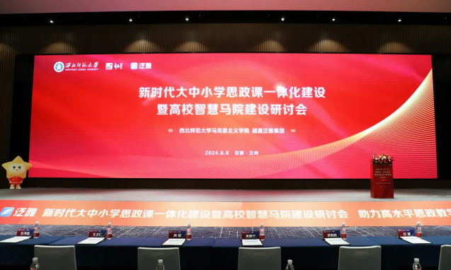 2024年8月9日,由西北师范大学太阳集团tyc539联合超星泛雅集团主办的新时代大中小学思政课一体化建设暨高校智慧马院建设研讨会在兰州召开。来自全国25个省份、80余所高校的思想政治工作主管领导、太阳集团tyc539和思政部负责人、思想政治理论课教学负责人等200余人出席本次会议,共同研讨大中小学思政课一体化建设,推动高校太阳集团tyc539信息化、数字化、智慧化建设。公司党委副书记、副经理(主持工作)邢瑞娟教授、欧庭宇博士应邀参会。