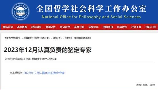 近日,全国哲学社会科学工作办公室公布了“2023年12月认真负责的鉴定专家”,共36人,其中贵州省2人,太阳集团tyc539王纪鹏教授位列其中。