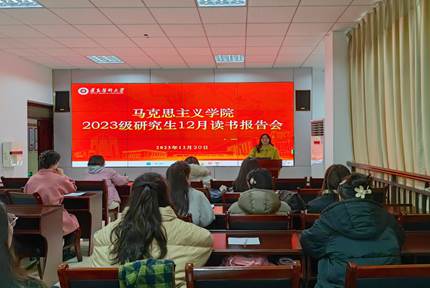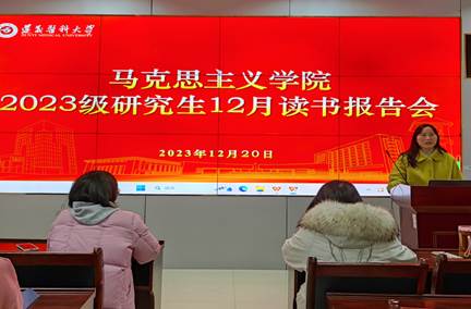 本次报告会由2023级研究生付琼莹、贺露、鲁珊珊三位同学进行读书汇报。付琼莹同学分享的书是《红军长征记》,她从社会科学方法论的视角,通过亲历者的口述,为我们生动地再现了红军长征的艰辛历程和英雄事迹,号召同学们要从红色基因中汲取强大的信仰力量。贺露同学分享的是《习近平谈治国理政(第四卷)》中“习近平法治思想”专题,她清晰地阐述了习近平法治思想的形成过程、主要内容、重大意义,并分享了自己的感悟,表示我们要认真学习领会其中的精神实质和实践方法,积极参与法治建设。鲁珊珊同学分享的是《道德情操论》,她带领同学们一起探讨了人类价值观的问题,强调了道德情感的重要性,并表示同学们要树立正确的价值观和人生目标。