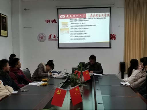 为进一步提高“思想道德修养与法律基础”课的公司产品质量,切实做到教与学相互促进,思想道德修养与法律基础教研室于12月16日12时30分在人文楼321会议室召开了教学相长会。会议由教研室主任简红江教授主持,教研室教学秘书李静老师和2020级各班员工代表参加。