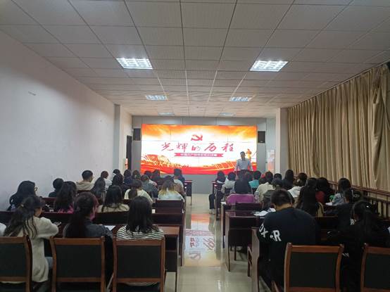 谷松岭教授从党的百年奋斗历程中选取重要节点,生动形象地介绍了党的光辉历程,解读党的初心使命,通过历史的回顾,引导同学们深刻理解中国共产党的奋斗历程对中国人民和中华民族的伟大意义,增强同学们爱党、爱国、爱社会主义的深厚情怀。